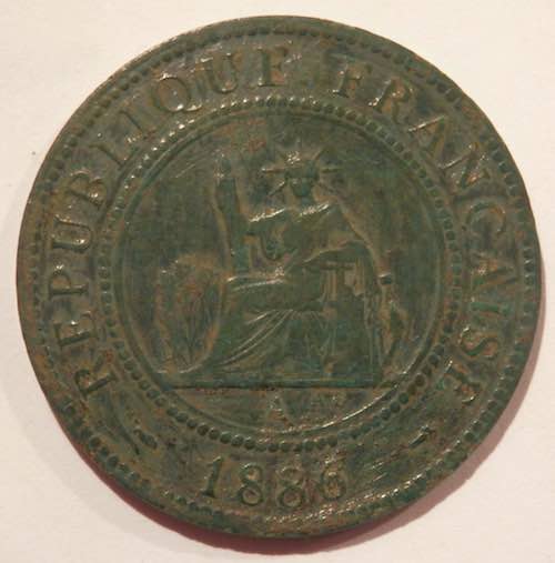 Tout est écrit dessus, mais j'ai été bien surpris de trouver cette monnaie, accompagnée dans le même trou par une 5ct suisse de la même époque. Je ne connaissais même pas l'existence de ce genre de pièces. République Française, donc...