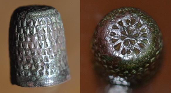 Des triangles ont remplacé les points, les triangles seraient apparus sur les bagues à coudre Allemande au XVe siècle. L'emboutissage des dés apparait XIV e siècle