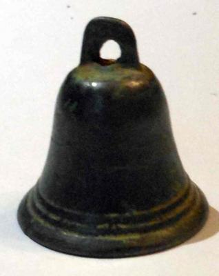 La clochette, juste passée sous l'eau du robinet. Dimensions 7 cm de haut.