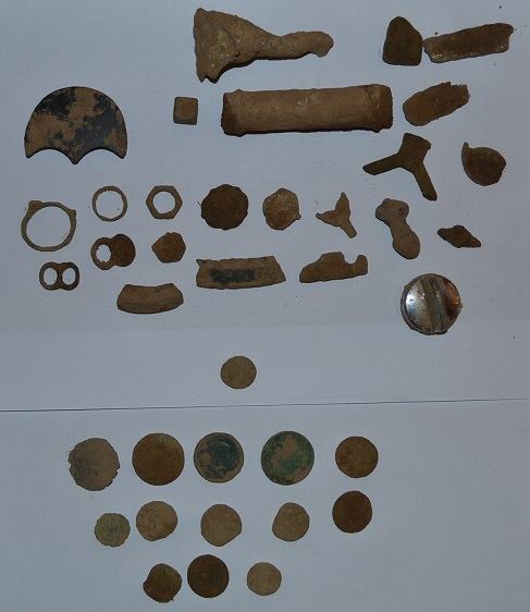 Après le tri, il me reste 4 monnaies identifiables dont une en argent très jolie de 1608. Une 5 centimes , une Dupuis et un jeton ou monnaie de 17 cent et des brouettes limite savo.
