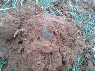 deux coups de piochons, je retourne la motte, je repasse le disque dans le troup et là !!! Rien, pourtant ça avait bien sonné,
