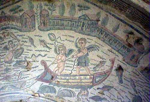 Je joins deux petits cupidons à la pêche (villa du Casale, près de Piazza Armerina, début IVème) :