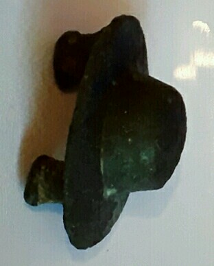 Dis moi, pourrais-tu examiner l'objet qui se trouve entre ton t'as de mer...ouille et le restant de manche (sur l'extrémité gauche du restant de manche de couvert)? Ça ressemble à une applique de harnais GR, un peu comme sur celle de la photo que je joins.