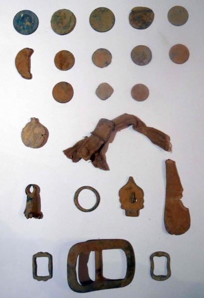 treize monnaies dont un demi As et un joli Napoléon, les autres sont au nettoyage