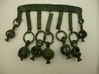 un objet en bronze dont il ne reste que le haut comportant un anneau
