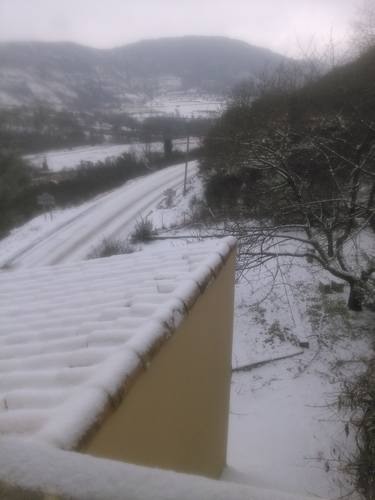 Oui papy, enfin de la neige à Bourg st andéol. C'est mercredi les gamins s'amusent, et les grands enfants aussi. Tout à l'heure il tombait des flocons qu'on aurait dit des sous-tasses. tout est blanc