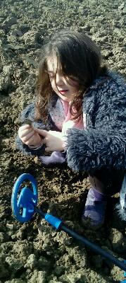Petite sortie en famille en foret avec ma fille avec son bounty hunter junior TID, la première sortie avec pour elle, un détecteur pas trop mal pour les enfants un bon compromis, une petite napo pour elle que j'avais préalablement caché sur le chemin toute fière, demain direction les champs, peut être d'autre trouvailles pour elle demain.
