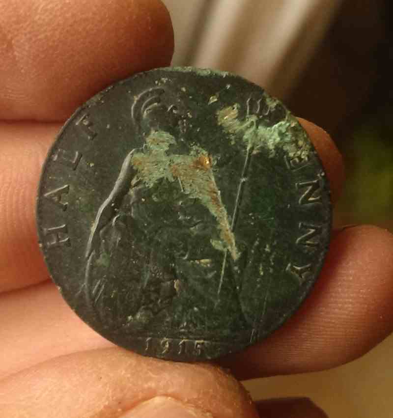 Pour le partage je vous soumets ce Half Penny de 1915 fortuité ce matin dans un champs du 39. Ce n'est pas très vieux mais j'adore sortir des monnaies étrangère de terre ! Ma toute première monnaie était un Pfennig et voilà ma deuxième monnaie étrangère !