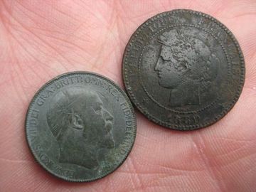 [192] Dans le 39 ce genre de trouvaille doit être assez rare, mais il est vrai que dans nos contrées du Nord-Ouest c'est plus courant. J'ai détecté l'autre jour une monnaie 19éme 'State of Jersey'. Hélas au nettoyage elle m'a échappé et je ne l'ai plus retrouvée !