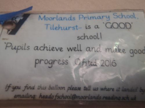 Parfois les trouvailles ne sont pas dans la terre mais tombent du ciel. .Trouvaille sympathique et originale : Une carte plastifiée accrochée à un ballon bleu. Elle a traversé la Manche. Une petite Tianna a écrit que son école est la meilleure car on s'y amuse bien !