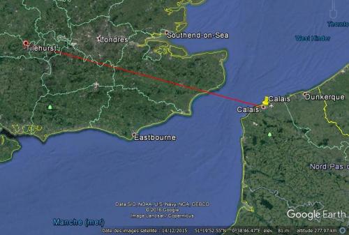La distance en ligne droite jusqu'à Calais est de 210 km Merci Google hearth