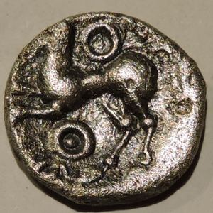 En fait, je pense qu'il s'agit d'un quinaire Eduens Ă la tĂȘte casquĂ© !