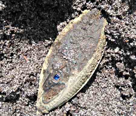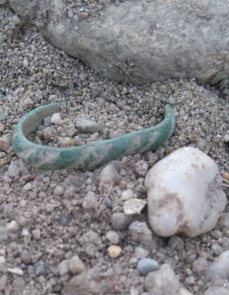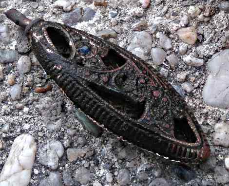 C est en cuivre,l objet est creux et identiques sur l autre face,et était argenté,on voit des restes...on voit le reste d une tige cassé sur un des deux bout..