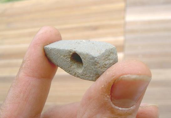 hum, ces percages à debouchure conique me rappele un objet trouvé il y a quelques temps et identifié comme sans doute une pendeloque néo