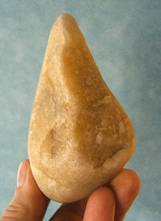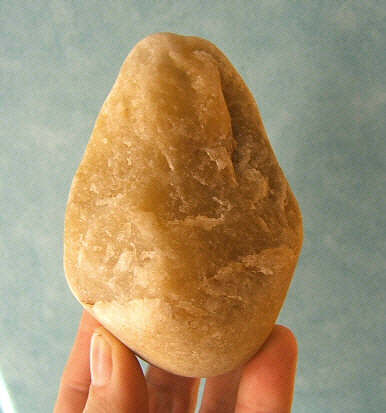 Ce qui est drôle, c'est qu'une des faces correspond à la surface d'un galet. Je ne sais pas trop quelle est la matière utilisée?