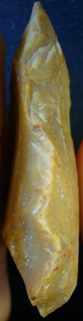 J'ai, par exemple, découvert ce petit biface moustérien (?; 6/7 cm) auquel je tiens beaucoup! Je l'ai découvert près de mon beau biface moustérien et j'ai tapé un sprint à travers les labours pour le monter à mon père!