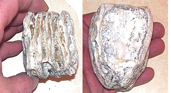C'est un herbivore, ça c'est sûr. Mais pas un dinosaure. C'est beaucoup plus récent à mon avis. J'y verrais bien vu la taille, une dent de mammouth (peut-être qu'un fragment) ou de rhinocéros.