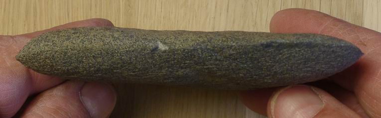 Ce ne doit pas être non plus un simple galet de rivière, il doit certainement y avoir des haches classiques en cette roche, type roche verte
