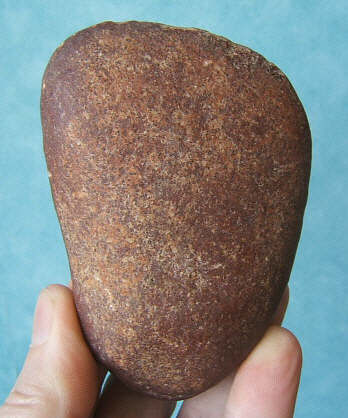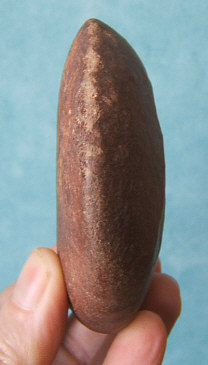 voici un galet de quartzite tout ce qu'il y a de plus naturel, la similitude avec une hache est frappante, la périphérie du galet est arrondie, seule la partie qui pourrait etre attribuée à un tranchant est tranchante, le vent et le sable sont à l'origine de cette curiosité, d'autre part, la patine déposée dessus a surement plusieurs dizaines de millier d'années car très épaisse;