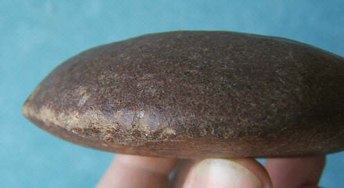 Ci-dessous une trouvaille que j'ai bien failli laisser dans le champ comme un simple galet plat. Je l'avais même jetée puis ai eu un remord.