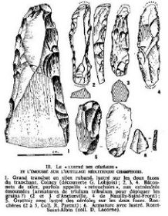 Je vous soumet ici un silex trouvé dans un labour des ardennes que je suppose taillé. J'ajoute également une planche tiré d'un livre sur l'histoire de la champagne où des silex semblables sont représentés. Sont ce les mêmes? Ce silex est-il vraiment taillé? Il mesure 85 mm de long sur 30 de large et envire 15 d'épaisseur.