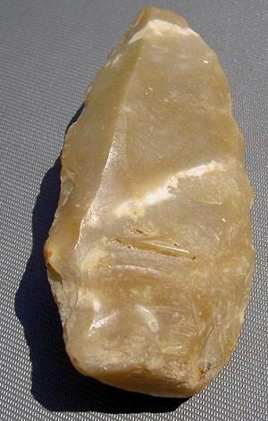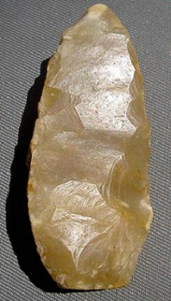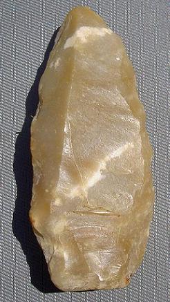 Comme personne n'a répondu, je pense à un joli petit couteau néo, le silex ressemble à celui que l'on trouve en tourraine, belle patine en tout cas, peut être a t il servi à tartiner des rilletes pour être lustré comme sra.