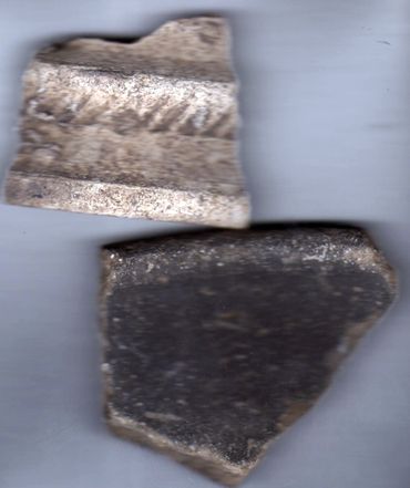 Le tesson clair ressemble à des rebords que l'on trouve en Sarthe ('vase baguette). Le tesson sombre ressemble à une écuelle ou un vase tripode.