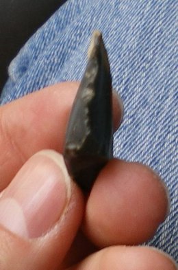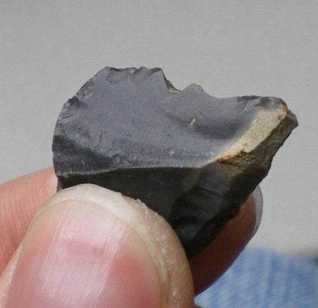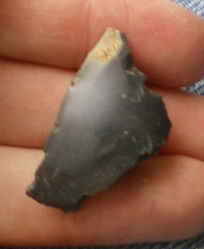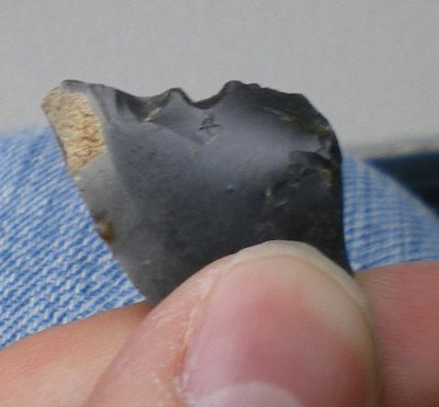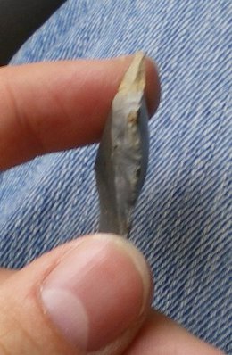 Voici une petite pointe en silex (34 x 24 mm) trouvée dans l'aisne. Vu les retouches je pense qu'il s'agit bien d'un objet taillé par l'homme. J'aimerai savoir s'il s'agit bien d'une pointe de flêche ou de lance comme je l'ai d'abord pensé ou s'il s'agit d'un tout autre objet.