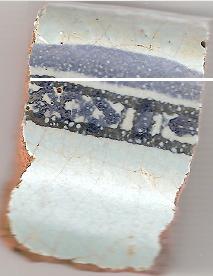 Voici un morceau de poterie terre orange interieur vernis marrin foncé exterieur dominante bleus pièce plate. Si quelqu'un a un renseignement. Découvert dans l'Aube. D'avance merci