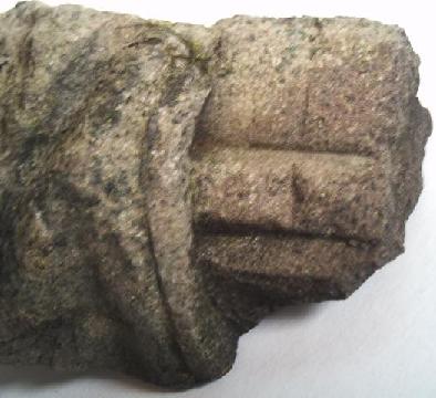 [111] voici un fragment de pierre de 15cm trouvé dans un ruisseau au même endroit que la bouteille en terre, avez vous une idée de son époque?