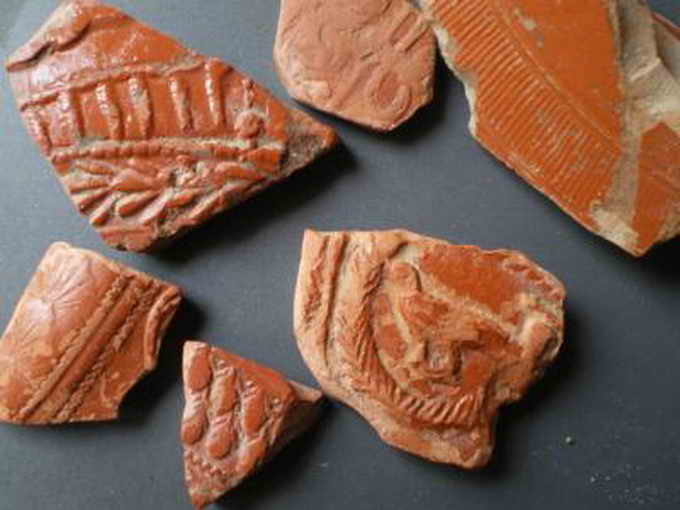 Ce sont bien des sigillées gallo-romaines. Certains poinçons sont surement identifiables et pourraient éventuellement provenir d'ateliers tels que celui d'Aspiran. Pour cela il faut regarder dans la bibliographie.