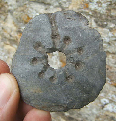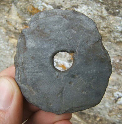 merci, lou gobi et gilles pour votre éclairage, maintenant que vous le dites, sa destination parait plus évidente, donc un moule à fusaioles ou rouelles, il manque l'autre moitié.