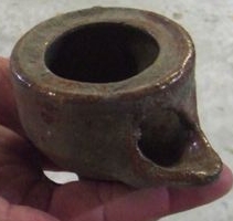 On ne voit pas le pied, mais cette lampe à huile se plaçait peut-être sur un chandelier...