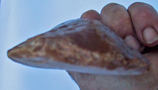 je vous présente un silex en forme de hache de 18 cm sur 8;5 cm