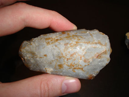 Voici un talon de hache polie et ce que je pense être une ébauche de hache (dont le travail aurait été abandonné suite à un faux éclat?) trouvé à 50 mètres l'une de l'autre dans un champ de l'Oise.