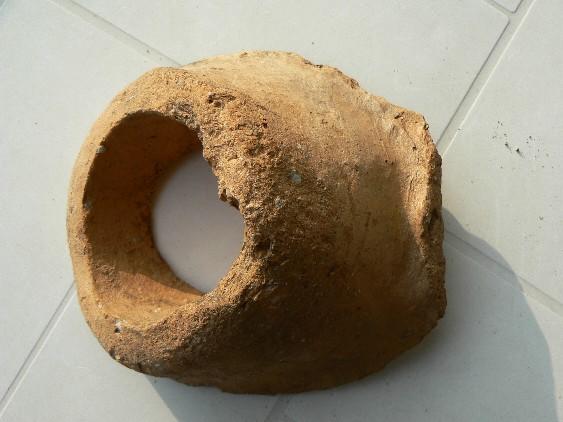Désolé je n'ai pas d'autre photos n'ayant pas l'objet sous la main, mais çà ressemble fortement au premier objet avec un orifice plus grand et il à l'air d'être passé au four. Qu'est un dolium ?