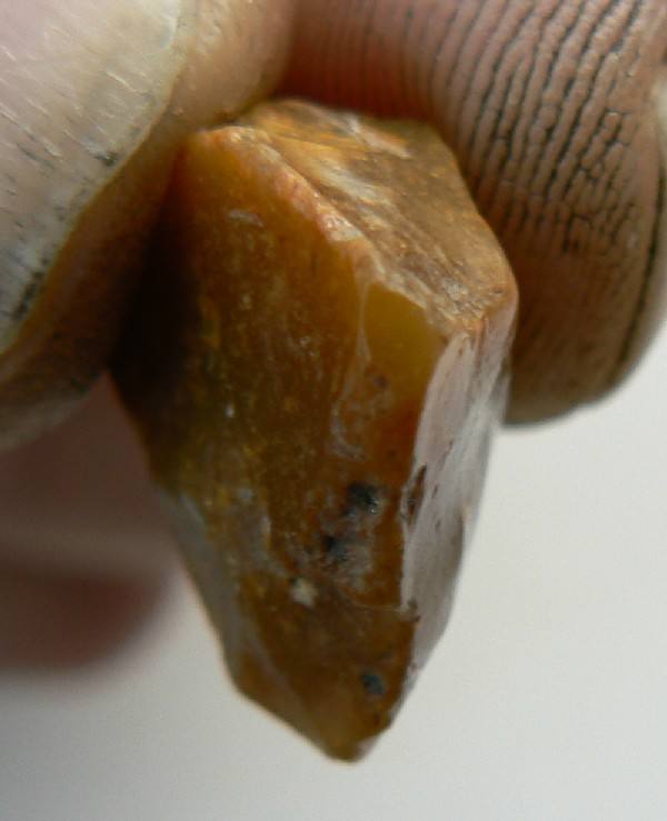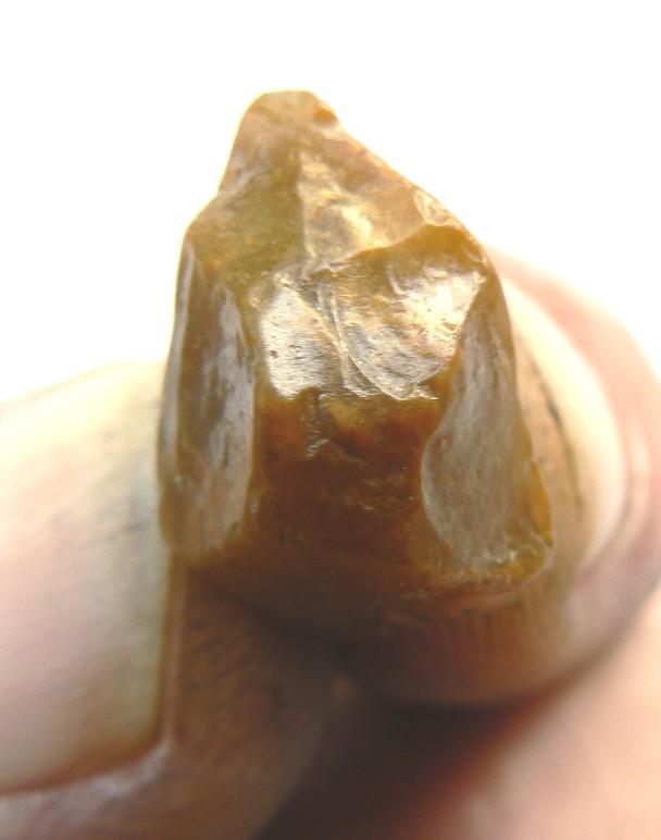 J'ai pensé que cette petite pierre pouvait être une pierre à fusil d'abord parce que c'est du silex blond, j'ai lu sur des docs que c'était le plus prisé particulièrement celui du Berry (Meunes) et que l'angle d'attaque de la pierre qui frappe sur le briquet ou fusil fait moins de 90°(R1 et R3) et pour finir j'ai cru voir des retouches sur l'éclat (R1) mais je ne suis pas un spé. Merci pour ton avis