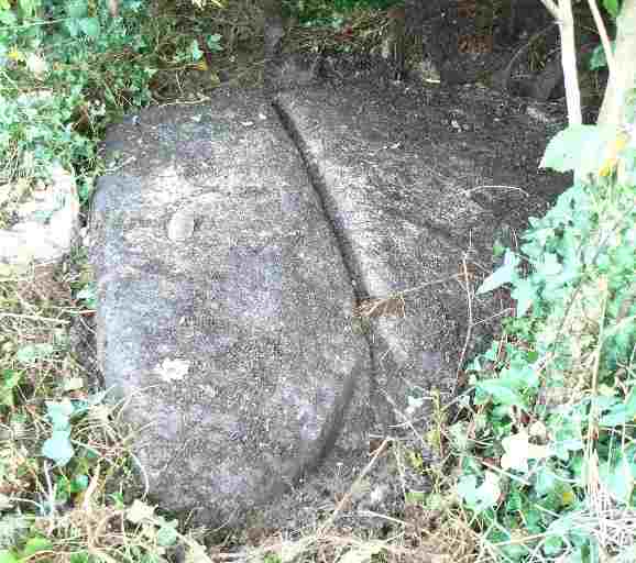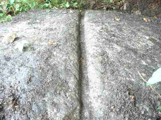 la saignée etait peut-etre destinée à scinder le bloc en 2. (encore que cela ne semble pas tres profond). Il me semble que la dilatation de l'eau avec le gel dans les silons etait utilisée pour briser les blocs de pierres.