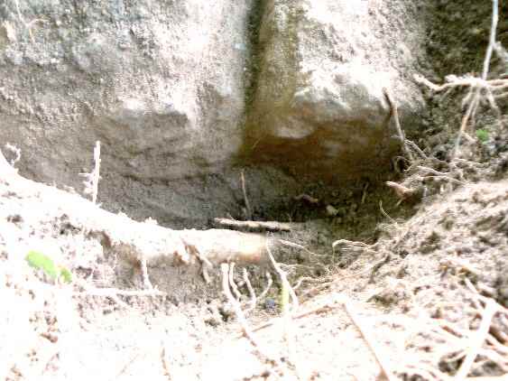 J'ai gratouillé un peu plus 'l'origine du monde' , je pense qu'il y a la même plateforme symétriquement mais un arbre avec ses racines m'en a empêché, si il faut en voir plus je peus peut-être demander d'enlever l'arbre, qui n'est en fin de compte qu'un gros arbuste.