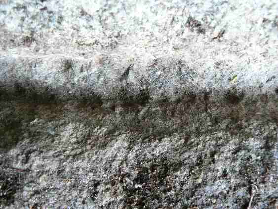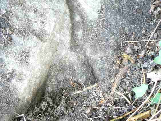 Pour waroch 56 je poste une photo , pas terrible , de la saignée ou l'on voit des coups de burin circulaires, petits et pointus ( ce sont les taches les plus sombres de la photo).