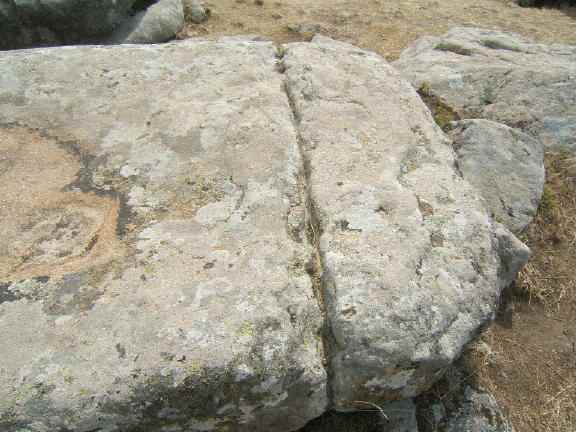 salut georges, pour illustrer ce passionnant débat, voici une photo que j'ai faite au dolmen de rondossec à carnac, on y vois nettement une tentative de débitage qui devait permettre de tirer un joli bloc qui aurais servit de linteau ou de jambage de porte