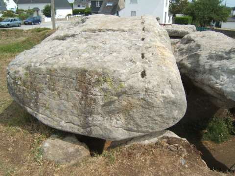 [161] toujours sur le meme dolmen, une autre forme de débitage avec une succession de trous