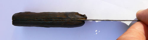 [1291] Le gars avait pratiqué une encoche à la base du manche pour pouvoir mieux forcer, à la manière d'un couteau à huitres, le bout du pouce rentre pile-poil.