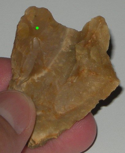 Voici un éclat trouvé en compagnie d'une armature de flèche perçante à pédoncule + éclats divers et variés de toutes tailles. Dimensions : 40 X 47 mm. Ce qui m'intrigue c'est cette sorte de pointe ! Alors, outil ou pas outil ?