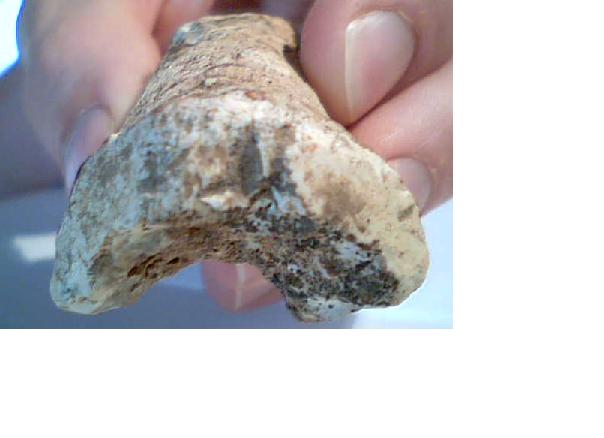 d'autre part, je reprécise qu'il s'agit d'un objet en pierre, pas d'un os. il est possible que ce soit un os fossilisé mais c'est belle et bien de la pierre. d'ou cet état de conservation.