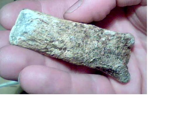 [1301] Trouvé ce matin cet objet qui ressemble a tout sauf a quelquechose de naturel. ca ressemblerait à un os fossilisé qui a été taillé à son extrémité. Jamais vu quelquechose de semblable donc je le soumets a vos connaissances et commentaires. poids d'un pierre, longueur 8 cm, largeur 25 mm. Merci
