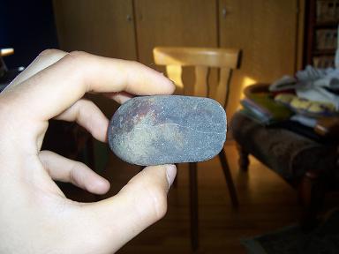 Si la pierre avait été très légère, vu la forme, ça ressemblait bigrement à une pierre ponce qu'utilisaient nos parents pour se détacher les mains, mais, là , cela à l'air d'être moins rugueux et plus lourd ...