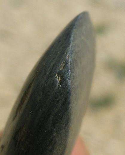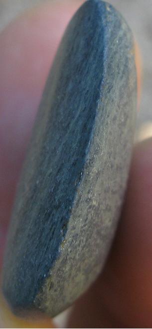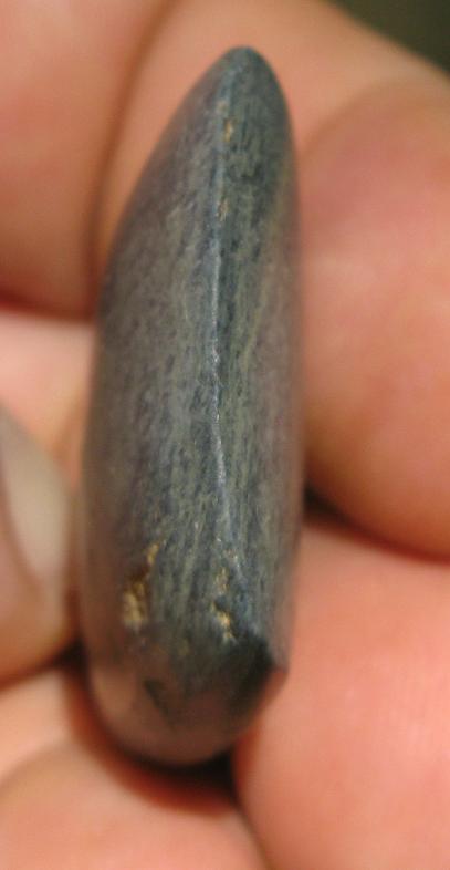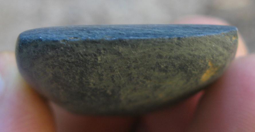 hiers soir apres une visite chez des amis en parlant de detection et de cailloux on m'a remis dans la main cette petite hache de 6 cm sur 4cm au plus large.
