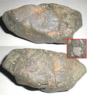 Les taches claires sont des cristaux. La pierre à été lavée avec une brosse à dent et du savon. Il n'y a donc plus de terre qui adhère