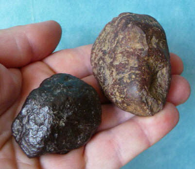 j'ai également trouvé deux ' pierres ' semblables qui font penser à des météorites, surtout la noire brillante, ça ne réagit pas à l'aimant, pour le détecteur je n'en sais rien, elles ont été identifiées lors d'une bourse aux minéraux par des experts comme ' limonite ', c'est tout ce que je peut en dire.